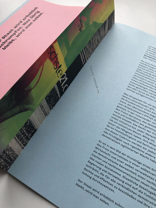 Eigentlich war geplant, dass Studierende den Text von Beuys (erschienen in der Frankfurter Rundschau am 23.12.1978), in Zusammenarbeit mit dem Fachlehrer Dipl. Des. Hartmut Schaarschmidt, als Buchdruck-Edition konzipieren, gestalten und drucken, aber dann kam aus bekannten Gründen alles anders und die Werkstätten konnten nicht benutzt werden.