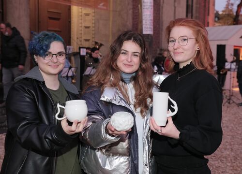Pünktlich zum Start des MIKS wurde die Krefelder Weihnachtsmarkt-Tasse 2021 präsentiert. Zehn designkrefeld-Studierende befassten sich unter der Leitung von Projektbetreuer Knut Michalk im Sommersemester mit der Entwicklung – von ersten Vorschlägen bis zum Prototyp in der hauseigenen Porzellanwerkstatt.