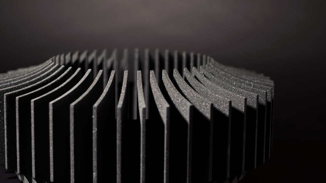 Siliciumcarbid ist ein synthetischer, bisher fast ausschließlich technisch genutzter keramischer Werkstoff mit besonderen wärmetechnischen und elektrischen Eigenschaften sowie extremer Härte. Studierende nutzten die Möglichkeit eines großformatigen firmeneigenen 3D-Pulverbett-Druckers zu Gestaltung funktionaler Strukturen und inspirierten den Auftraggeber Schunk zur Entwicklung von Leichtbauprodukten.