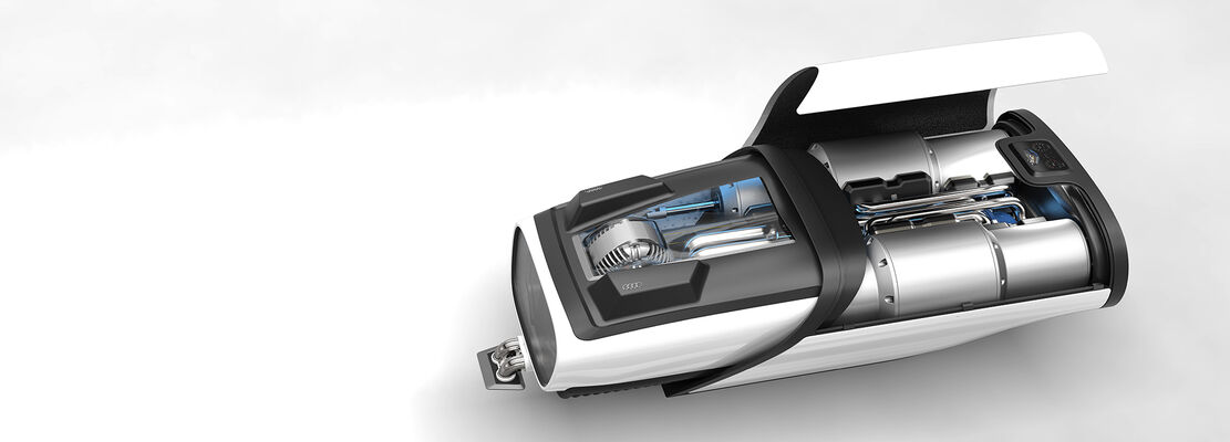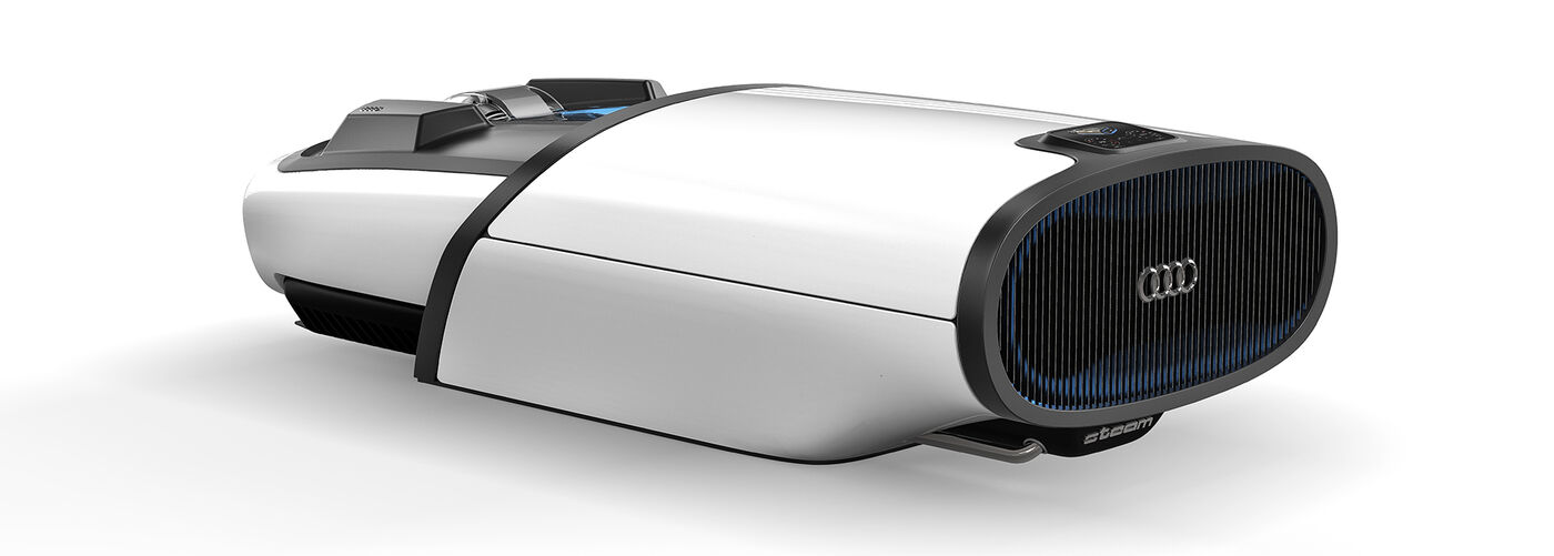 Das mehr als hundert Jahre alte Wirkungsprinzip einer Kolbendampfmaschine wird bei dieser Designvision an den aktuellen Stand der Designentwicklung katapultiert. Bewegung, Kraft und Mechanik werden übersetzt in die heutige Produktsprache und lassen die Idee eines Aggregates für private Energie-Selbstversorger entstehen.