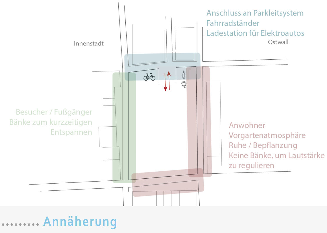 Der Dr.-Hirschfelder-Platz ist in der Krefelder Innenstadt einer der zentralen Parkplätze und somit für viele die erste Anlaufstelle bei einem Stadtausflug. Kerstin Froch ist mit gut reflektierten Gestaltungslösungen gelungen, den Parkplatz so zu fassen, dass dessen Ränder zu Aufenthaltsorten werden. So wird der Innenstadt ein würdiges Gesicht gegeben, ohne Parkraum zu verlieren.