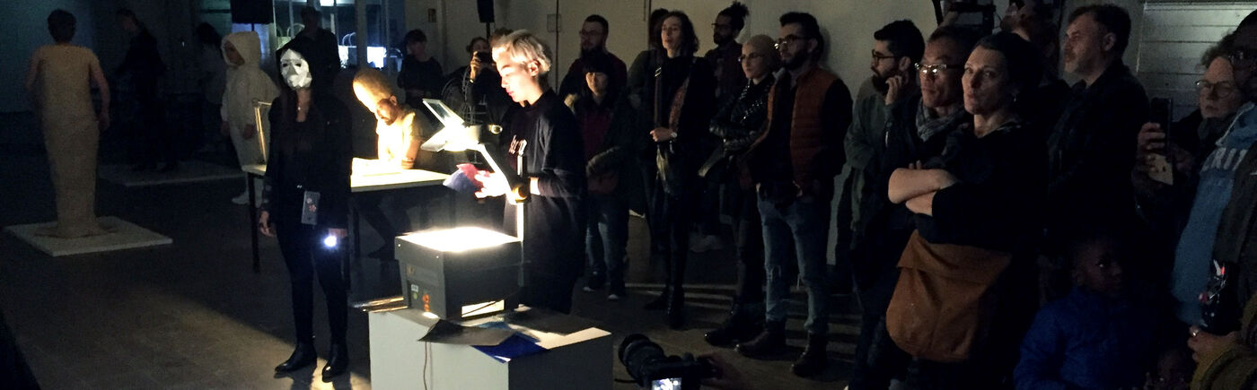 Das experimentelle Format wurde im Sommersemester 2019 mit Studierenden der Gestaltungslehre-Kurse von Susanne Specht und Mathias Lanfer sowie den Projektkursen von Silvia Beck und Gerhard Hahn entwickelt und von Nils Voges von sputnic visual arts unterstützend begleitet.