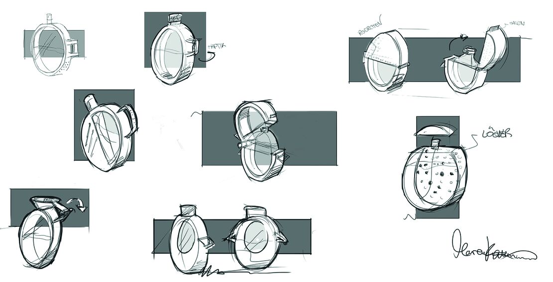 Schnelle Skizzen helfen erste Ideen und Funktionsprinzipien zu visualisieren und sind Grundlage für spätere digitale Darstellungen, die zeigen wie Denim mit Glas kontrastiert.