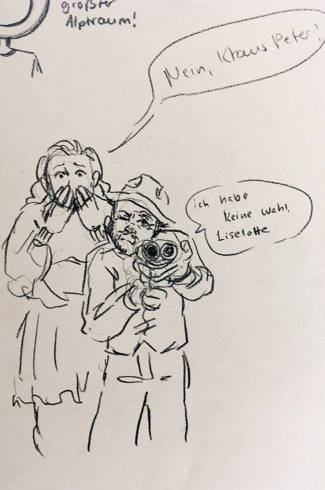 Die Herausforderung bestand darin, sich diesen Themen zeichnerisch in möglichst zahlreichen Variationen zu nähern. Dazu gehören naheliegende, im Wortsinn verstandene Lösungen, aber auch freie Assoziationen, die weniger als unmittelbare Illustrationen zu verstehen sind, sondern als bildnerische Ergänzung zum Text. Ziel ist das Erreichen eines sicheren Skizzierens, dass spontan und souverän auf unterschiedlichste Themen zu reagieren versteht.