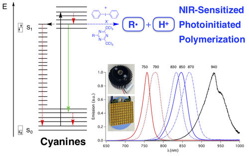 C. Schmitz, A. Halbhuber, D. Keil, B. Strehmel,"NIR-Sensitized Photoinitiated Radical Polymerization and Proton Generation with Cyanines and LED Arrays" Progress in Organic Coatings 2016, 100, 32-46.