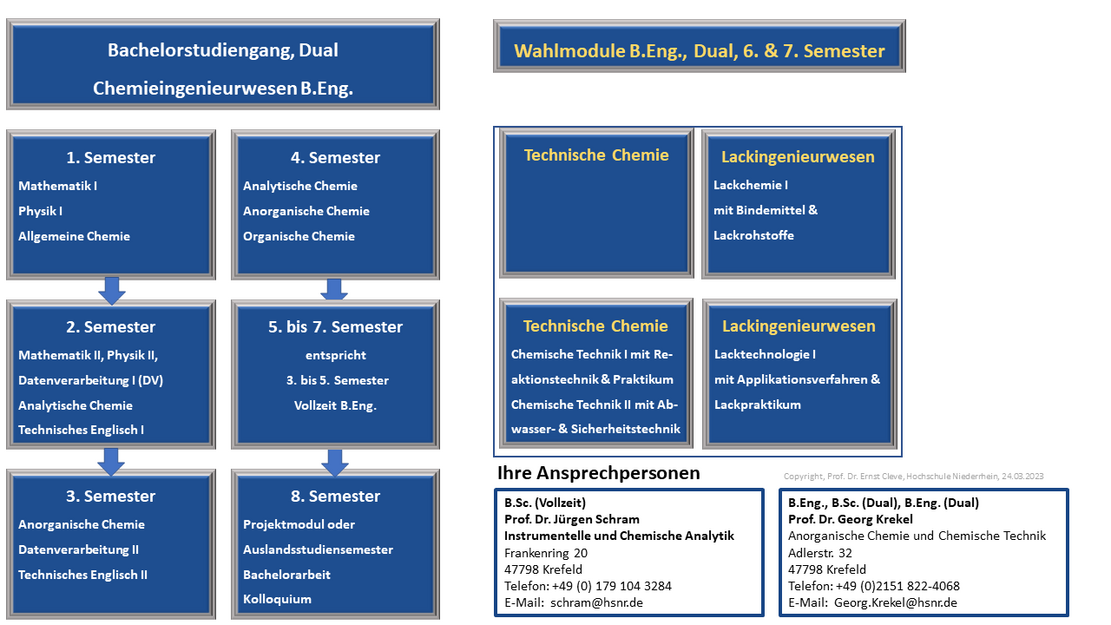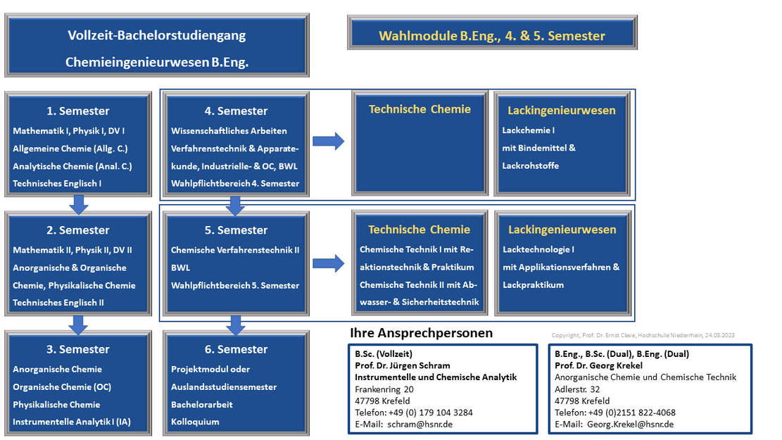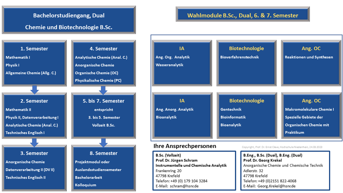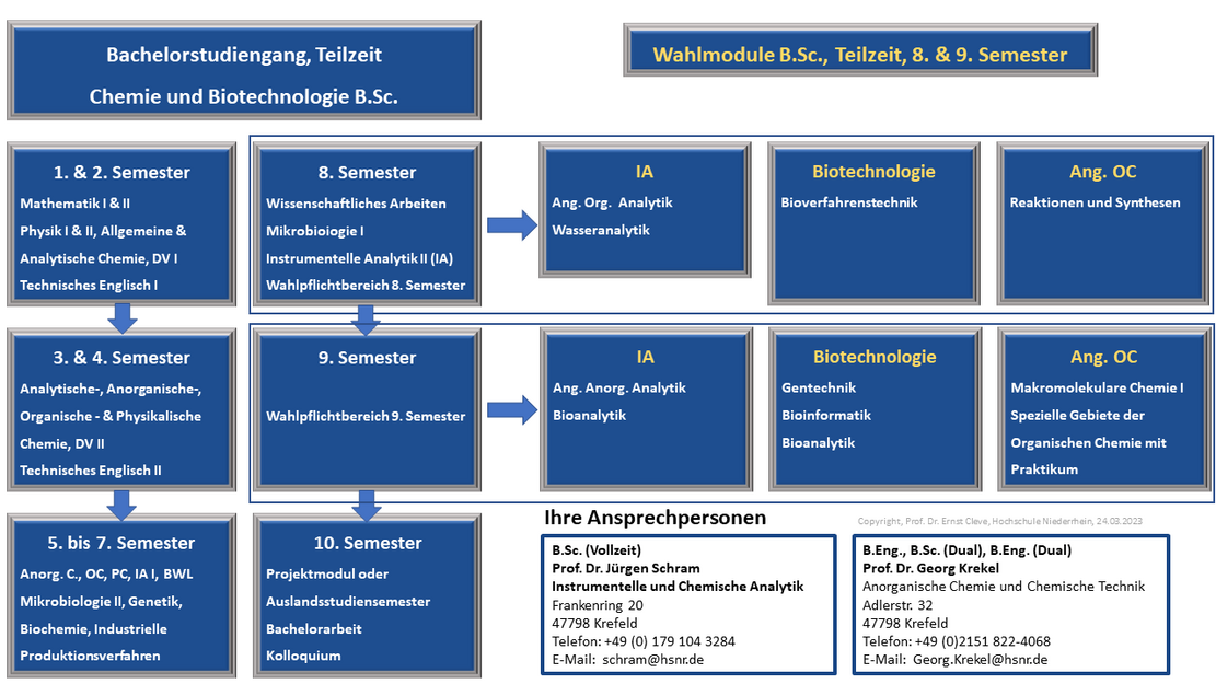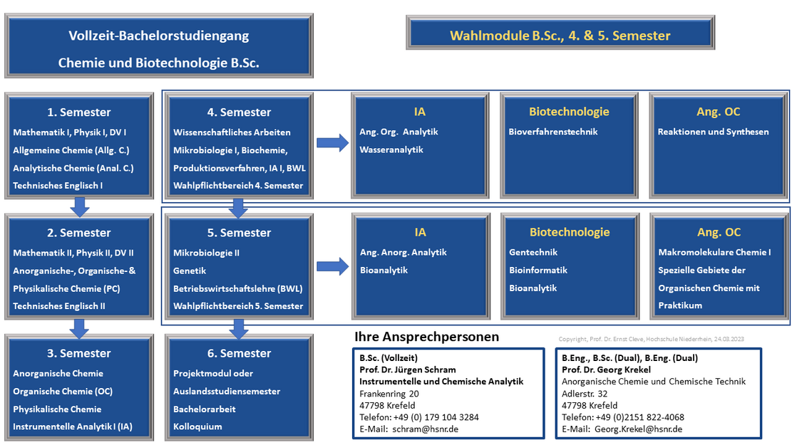 The Faculty of Chemistry with around 1,000 students is located at the Krefeld West site. Chemistry on the Lower Rhine has a tradition of more than 150 years. 19 professors and numerous staff members supervise our students in the two Bachelor's degree programmes: