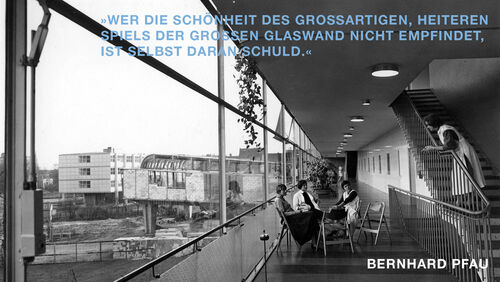 All of this constitutes creativity, all of this also constitutes our Faculty of Design - and it naturally and first and foremost constitutes the work of Bernhard Pfau. Today, almost 60 years after the construction of the "UFO," as the forward-projecting main auditorium is popularly known in Krefeld, we would do well to take an in-depth look at its builder. He left us far more than just an - admittedly impressive - building.