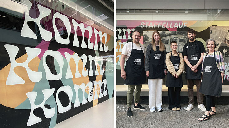 The prospective communication designers Samuel Heinbach, Katharina Heyer and Pauline Vor were accompanied by Prof. Nora Gummert-Hauser and Dipl.-Des. Jens Könen in the development of the exhibition.