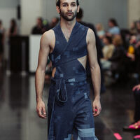 The outfits range from the beginnings of denim as workwear by Levi Strauss to the current consumption-driven denim industry. The final outfit features zero-waste clothing that uses an alternative joining method to sewing. The collection is the result of an optimization of denim finishing processes based on the application of laser technology and design innovations, aiming to reduce resource consumption and emissions in denim production.