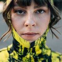 The longsleeve is made of stretchy jersey, which makes it fit the body comfortably. The sleeves are overlong and visually change the usual proportions. If required, the bonnet can be worn, which fits comfortably around the head thanks to the soft, stretchy jersey.