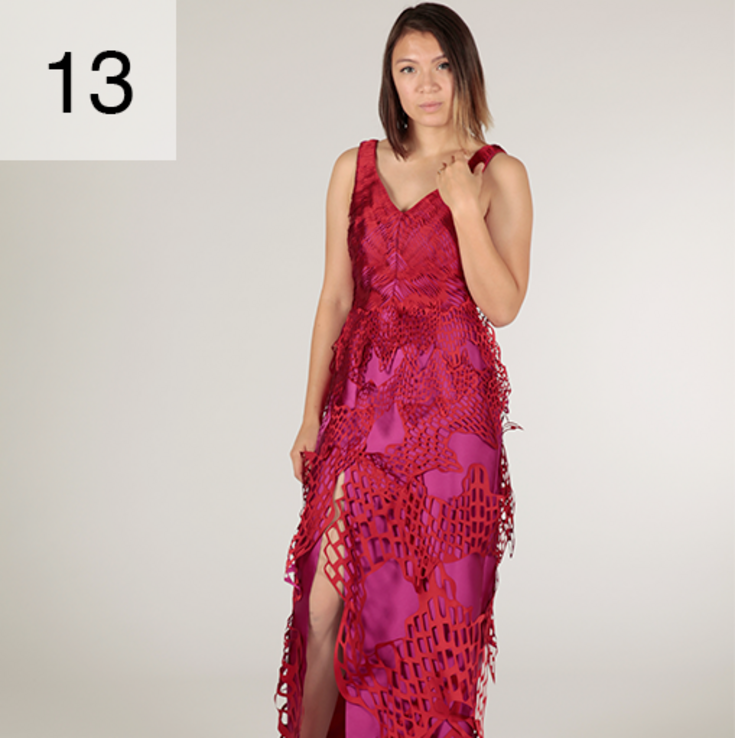 In this dress, metamorphosis as one form of change becomes obvious through the transformation of a caterpillar from a cocoon to a winged insect. Through this the designers draw attention to the laser cutter and ultra-sonic welding as digital and resource-efficient processing techniques at the same time. The digitally structured fabrics of the dress allow a constant adaptation to the movements of the wearer and symbolically express change through textile multi-colour effects and color plays.