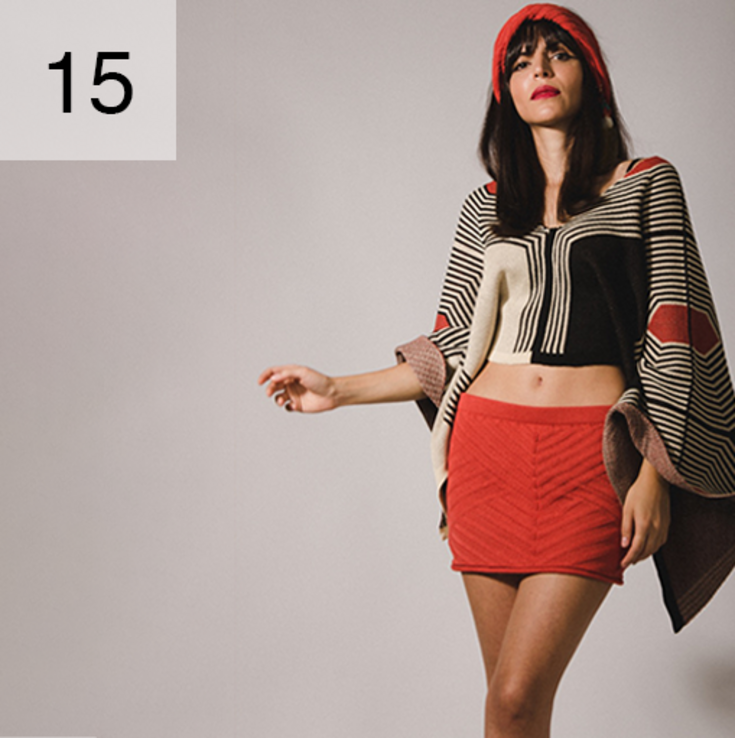 The subject of investigation and inspiration for this work and the resulting collection of 100% knitted outfits is the graphic art of Brazil's indigenous people. These graphic designs are an expression of the rich culture of the original inhabitants of Brazil and can be found in body painting as well as in arts and crafts, basketry, ceramics, jewellery and printmaking.
