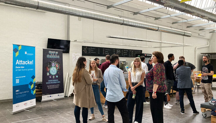 More than 20 founders met again in the Shedhalle of the Faculty of Design at the Campus West of the HSNR and talked about their experiences, visions, wishes and plans. There was a lively exchange between founders and the HNX team members in groups as well as in individual discussions. The relaxed atmosphere was accompanied by cool drinks and finger food, which tastefully underscored the active networking.