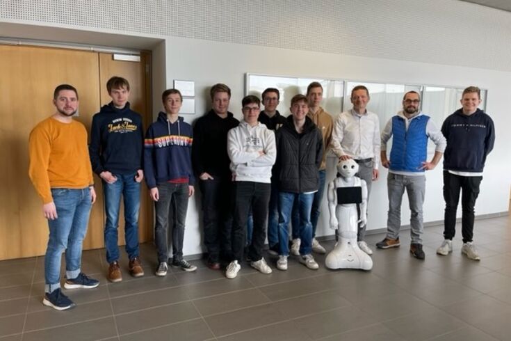 students Luca Trockle and Jan Sawicki informed the students and teachers about the current teaching education and research topics such as 3D scanning and 3D printing, swarm robotics, dart playing humanoid robots and more in the robotics lab. The students also took advantage of the convenient opportunity to ask questions about studies at the Hochschule Niederrhein and the Faculty of Industrial Engineering. The event was rounded off by a joint lunch (unfortunately without Pepper and Co. due to a lack of alternatives on the menu) in the cafeteria. Pepper and Co. are nevertheless already looking forward to a return visit to Grefrath.
