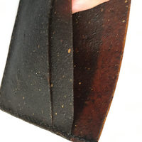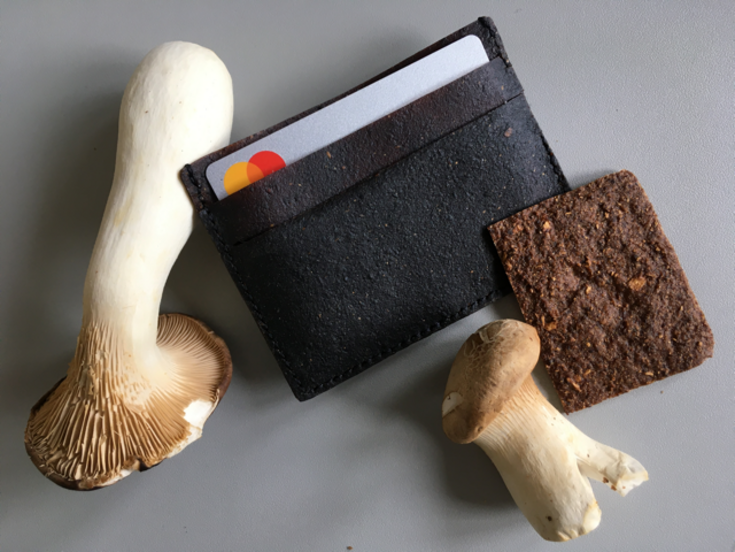 The aim of the work was to use an experimental approach to develop a sustainable plant-based alternative that is not dependent to the global market and that also enables small and medium-sized enterprises to produce raw materials, manufacture, process and recycle at one location. The material is adjustable in thickness, flexibility, color and shape. The exemplary cardholder developed from Fungi Artis is water-resistant and flame-retardant.
