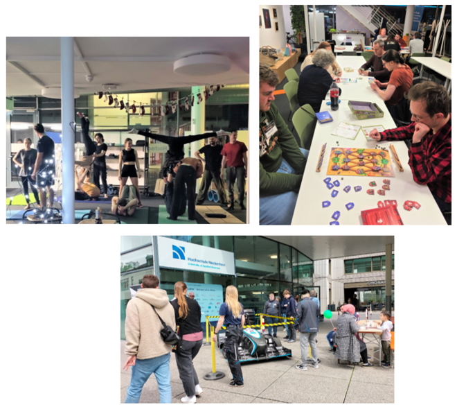 Experience - technology, team spirit and participation in the Future Work Lab around the Behnisch-Haus site in Krefeld. We will be showing several highlights from The Hochschule Niederrhein. Come along, take a look behind the scenes of student projects and experience how much passion there is in teamwork, movement and play.