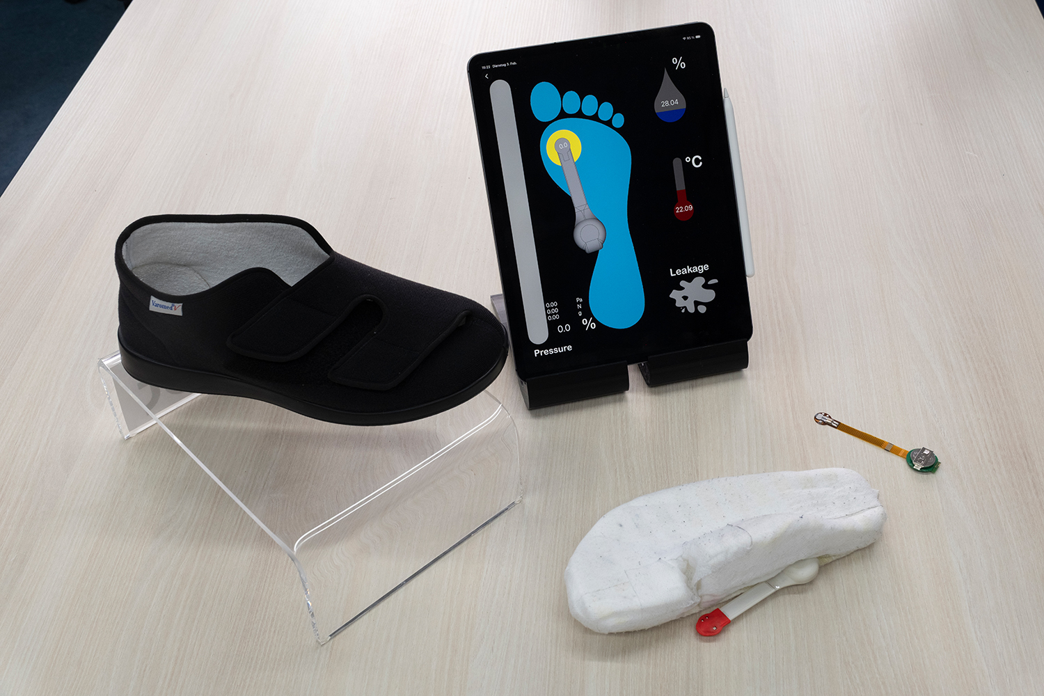 The researchers have developed several components as part of the EPWUF-KI project (relieving the burden on nursing care in the field of wound treatment using the example of diabetic foot syndrome using a hybrid AI system): A sensor-based sole measures the damaging pressure on the wounds on the feet. The data is sent to the patient via a smartwatch app so that they can react directly if the pressure is too high. Carers and doctors can also access the data via a web application and adapt further treatment. A mobile AI tool also supports carers with the regular measurement and documentation of wounds.