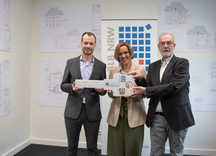 The Bau- und Liegenschaftsbetrieb Nordrhein-Westfalen (BLB NRW) has completely modernized the former Public Goods Testing Office for Textiles in Mönchengladbach, which is a listed building, in a short period of time. The historic building will be used in the future by the Hochschule Niederrhein. To mark the degree of modernization, Till Neschen, head of the Duisburg branch of BLB NRW, today presented the symbolic key to Prof. Dr. Fabienne Köller-Marek, chancellor of the university.