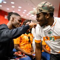 Côte d'Ivoire is a country passionate about soccer, and the Africa Cup will be held there in January 2024. So it was hardly surprising that the students were also full of anticipation for the extraordinary meeting. After all, Odilon Kossounou is a current national player for "Les Elephants," as the Ivorian national team is known. Equipped with jerseys of their national team, the travel group set off for Leverkusen.