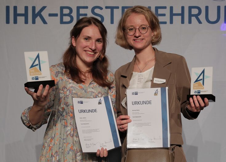 In the summer of 2022, the two women took their final exams at the Chamber of Industry and Commerce Mittlerer Niederrhein - with considerable success: both apprentices are among the best IHK trainees in the whole of North Rhine-Westphalia. Jabben achieved a final score of 99.5 points, while Reetz also did extremely well with 99.4 points. Since the final results are rounded up, both failed with the maximum score of 100 points.