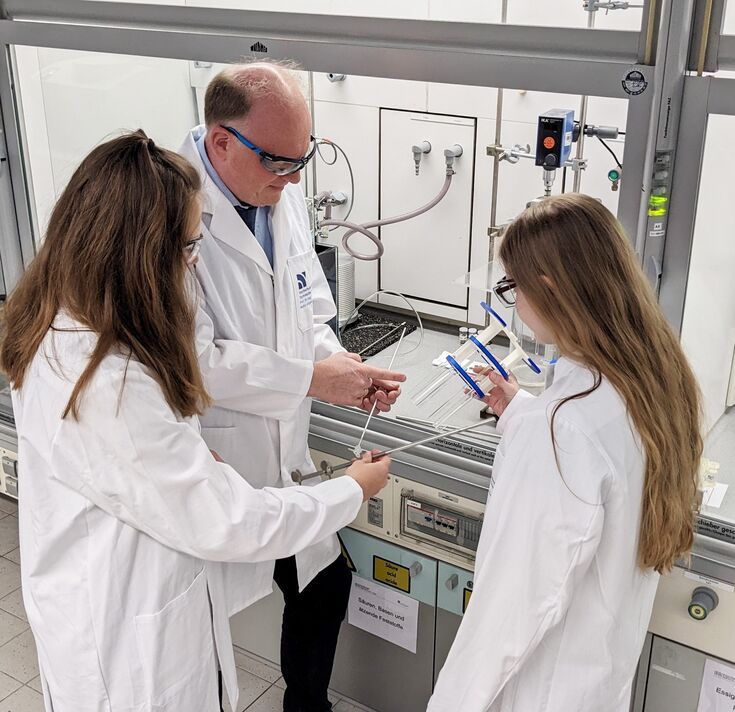 Cooperation partners in the project include small and medium-sized enterprises. "Our goal is to strengthen these companies in their competitiveness, also in the international market. Mixing processes should consume less energy and resources and thus become more sustainable in German industry," says the professor of chemical engineering. Together with his two Krefeld doctoral students Lena Kögel (24) and Carina Zube (27), who previously studied chemical engineering and chemistry and biotechnology, respectively, at HSNR, Schultz is getting to work.