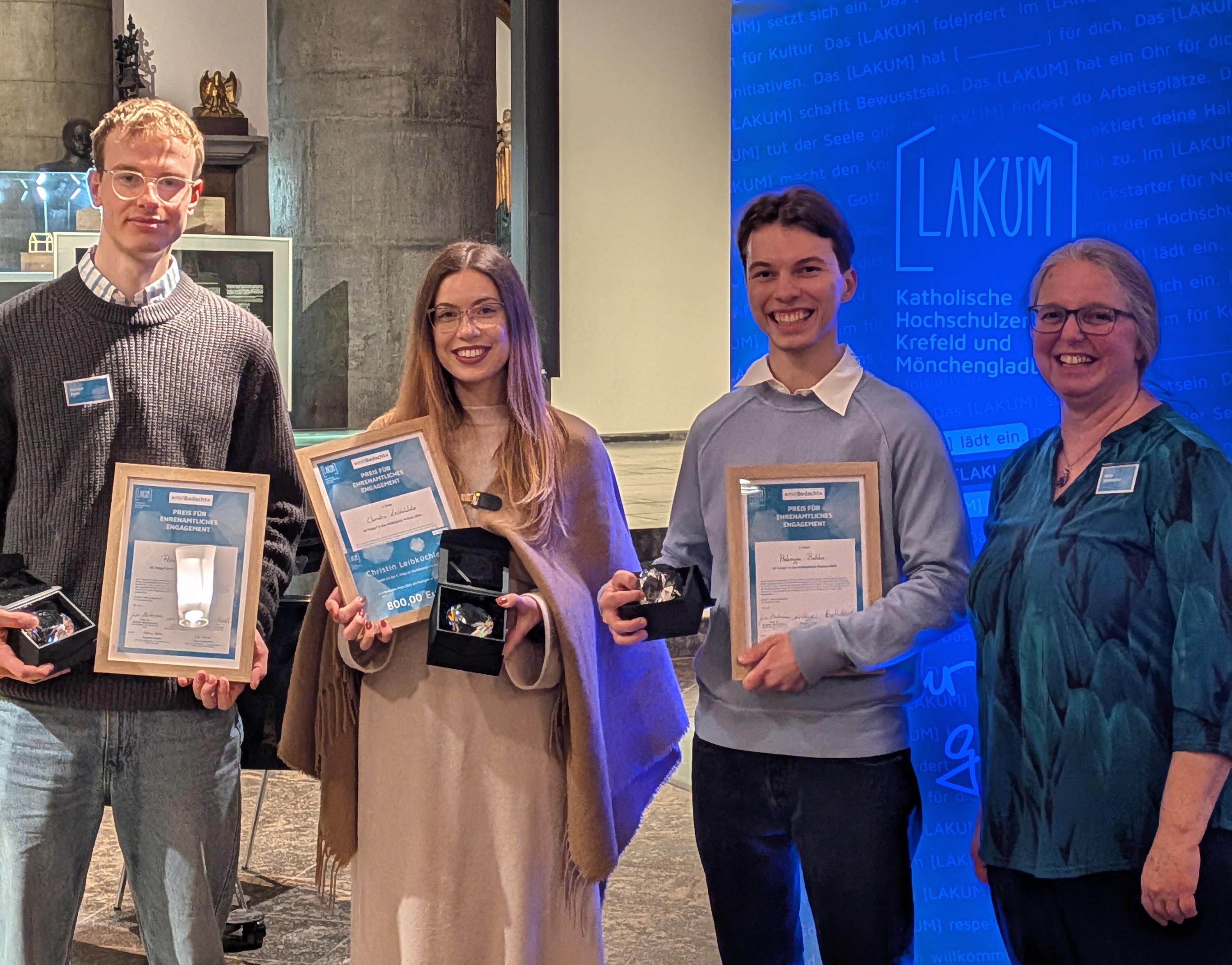 The Catholic university centres LAKUM Krefeld and Mönchengladbach have awarded the mitBedacht volunteering prize for the tenth time. Students from The Hochschule Niederrhein (HSNR) came together in Mönchengladbach's Citykirche to celebrate voluntary commitment that goes far beyond everyday student life. The "mitBedacht Prize" is endowed with a total of 2,000 euros.