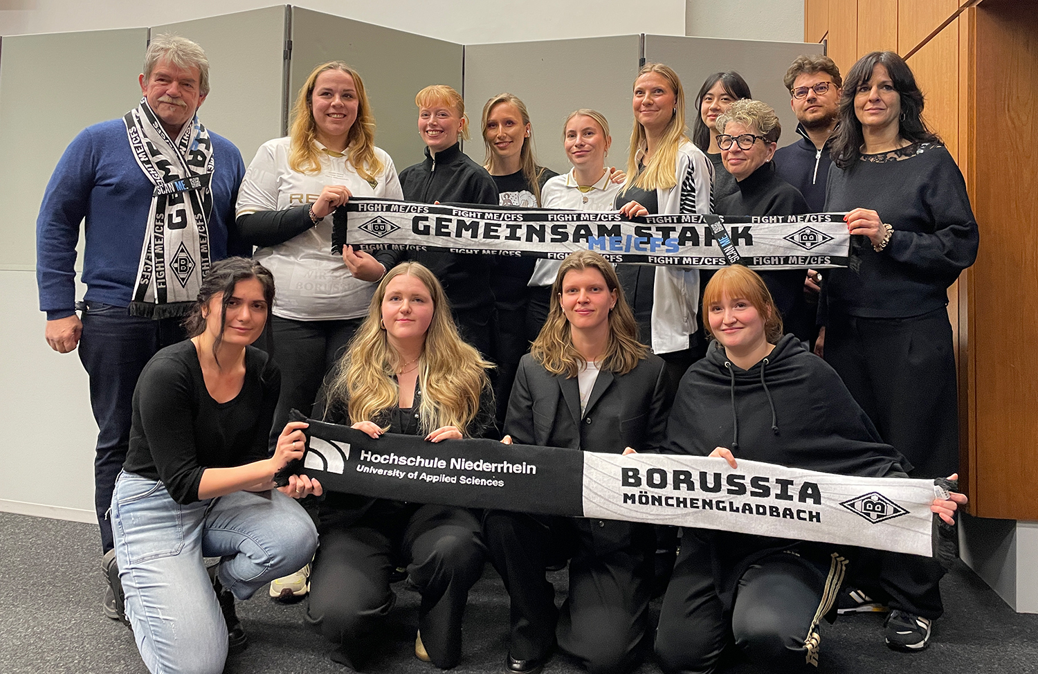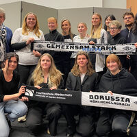 In cooperation with Borussia Mönchengladbach and the textile company Riking, ten students developed a fan scarf that draws attention to the disease ME/CFS. The focus is on the severe, chronic neuroimmunological multisystem disease. The innovative scarf with an integrated air filter insert leads via QR code to the website of the non-profit organisation Empty Stands, which offers information, exchange opportunities for those affected and a donation link. Further campaigns are planned in the stadium and in fan pubs.