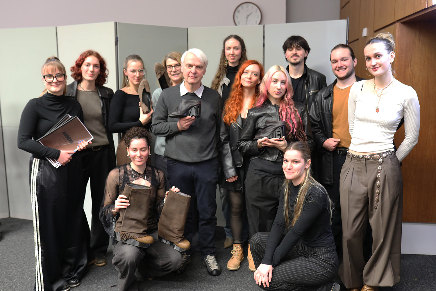 Using high-quality, unused leather from Lederfabrik Josef Heinen GmbH & Co KG, eleven students created three sustainable shoe models: a heeled shoe, a boot and a ballerina. The collection was created as part of a fictitious start-up, manufactured in the skilled trades sector and completed with matching soles using 3D printing. The students were supported by master orthopaedic shoemaker Urban Oymanns.