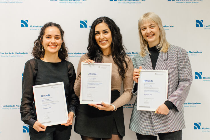 The Senate of the Hochschule Niederrhein has awarded the Senate Prizes, each endowed with 1000 euros. The Senate thus honors outstanding theses in four categories. "The theses show how diverse the university is. What particularly stands out is that all of the theses deal with sustainability," said Deputy Senate Chair Prof. Dr. Saskia Drösler at the ceremony.