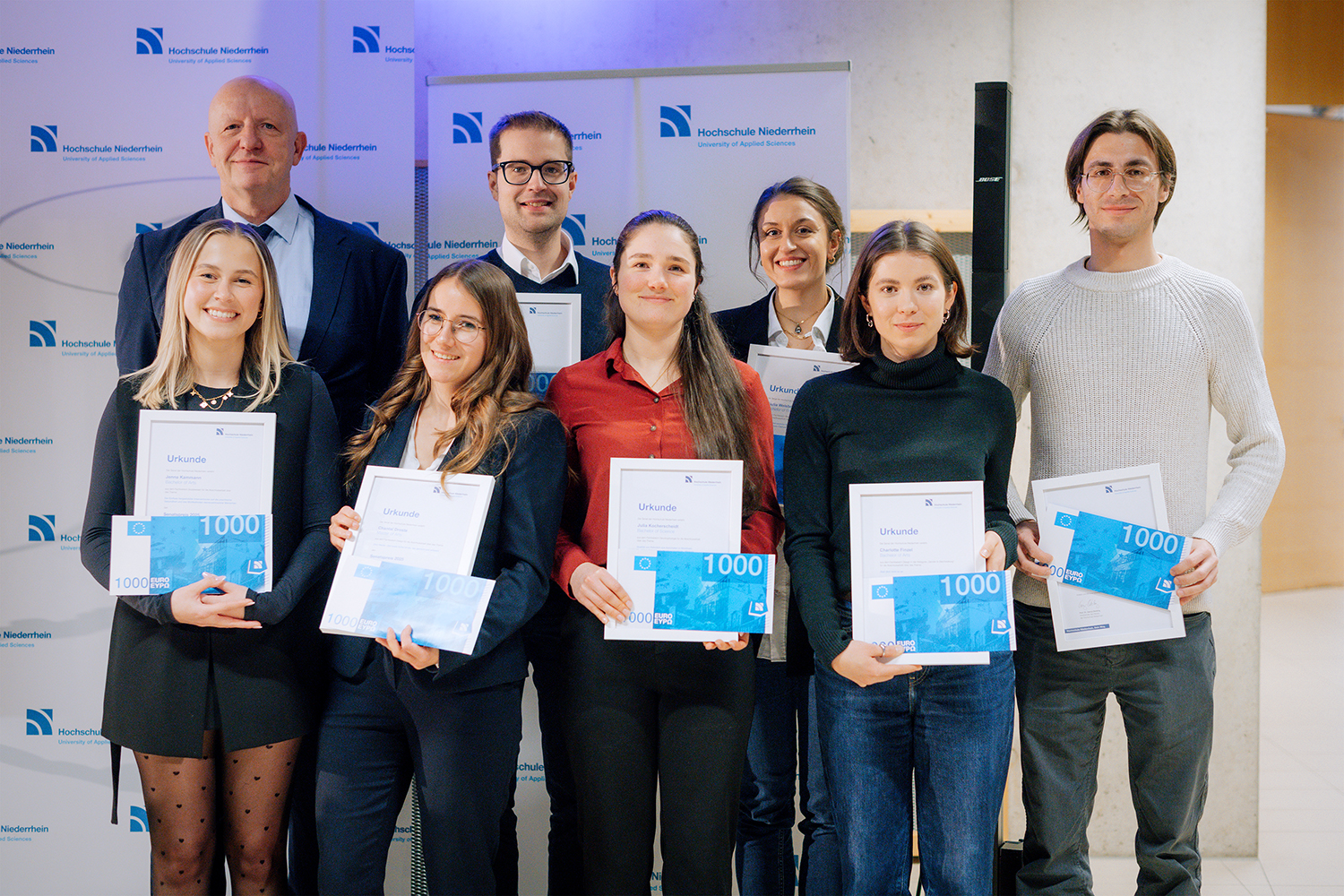 The Hochschule Niederrhein (HSNR) has awarded the Senate Prize 2025 in a festive setting. Nine students were honoured by the University Senate for their excellent bachelor's and master's theses. The prize is endowed with 1,000 euros each.