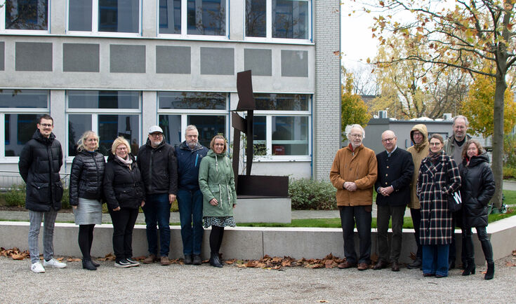 Attentive visitors to the Krefeld South Campus of The Hochschule Niederrhein (HSNR) will have already spotted it: The steel sculpture "Die Hockende" by Krefeld sculptor, draughtsman and art writer Hans Joachim Albrecht has recently been placed on the university grounds. The inauguration was attended by the HSNR Executive Board and university staff.
