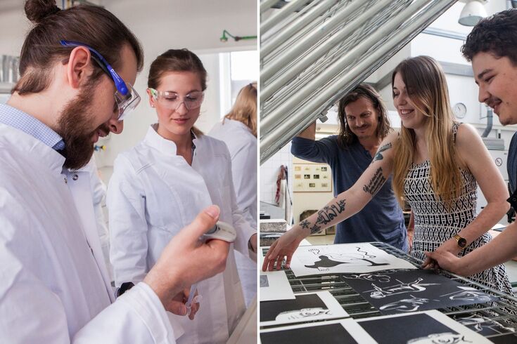You can try things out for yourself in the printing, model making and screen printing workshop. There are also workshops on etching shellac plates, button design for children and 360-degree videos with VR glasses. Portfolio advisory services are also offered for the Product and Object Design and Communication Design degree programs. Of course, there will be plenty of opportunities to chat with lecturers, students and alumni and enjoy refreshments in the café in the Shedhalle. Admission is free. The parking garage in Adlerstraße behind the Faculty of Chemistry buildings can be used free of charge.