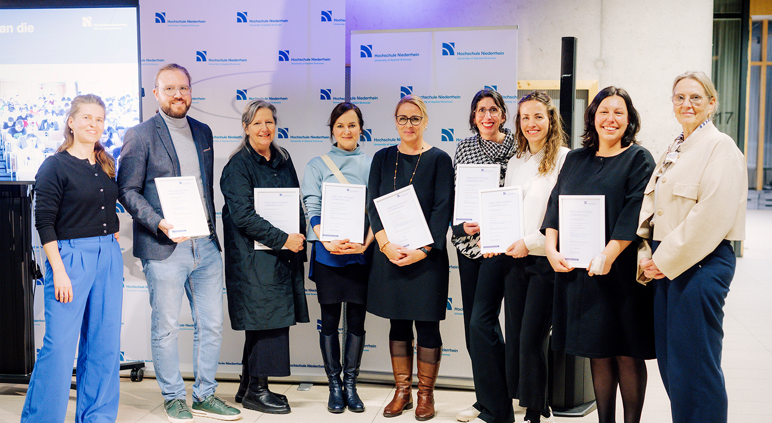 With the Teaching Award 2025, The Hochschule Niederrhein honours the lecturers of four outstanding courses that exemplify innovative, practical orientation and future-oriented university lecturing. A total of 25 courses from the winter semester 2024/25 and the summer semester 2025 were nominated by students and the teaching staff.