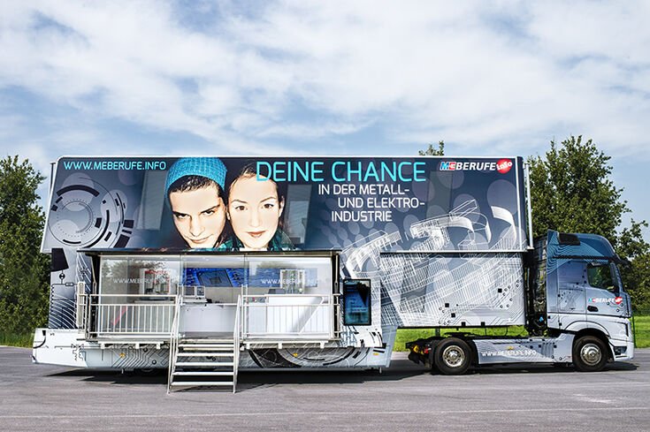Young people can explore the "fascination of technology" in a practical and intuitive way at experiment stations and actively try their hand at CNC milling, electronic circuits and elevator controls. Virtual participation in the production process of a car is also on the agenda.