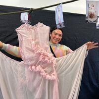 "Winning the silk ribbon is a great honour for me and fills me with pride," says Antonia Dannenberg. "I'm particularly pleased that all the work I've put into the collection has now been recognised in such a beautiful way." She also found the exchange with the other designers particularly enriching. "The visit to the House of Silk Culture was also an unforgettable moment: the stories of the Krefeld silk weavers made me realise just how rich in tradition we are. With this background knowledge, the distinction takes on a much deeper meaning for me. I think it's great that the city is giving young people the chance to present their collections to a wide audience and thus actively shape a piece of Krefeld's history." Antonia Dannenberg will invest the prize money in her own professional future after completing her studies.