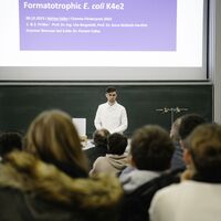 As human CO2 emissions are driving climate change, this year's prizewinner Adrian Faller looked at a promising solution offered by nature as part of his master's thesis: Microorganisms that can utilize CO2 and related substances, such as formic acid. Faller investigated the growth and lactic acid production in a genetically modified E. coli strain that occurs naturally in the human intestine in its original form. This strain uses a metabolic pathway inspired by nature to efficiently utilize CO2 and formic acid. "The prizewinner is thus making a promising contribution towards a more sustainable future," said Ralf Schwartz, Chairman of Unternehmerschaft Chemie Niederrhein at this year's award ceremony at The Hochschule Niederrhein in Krefeld.