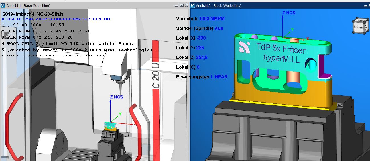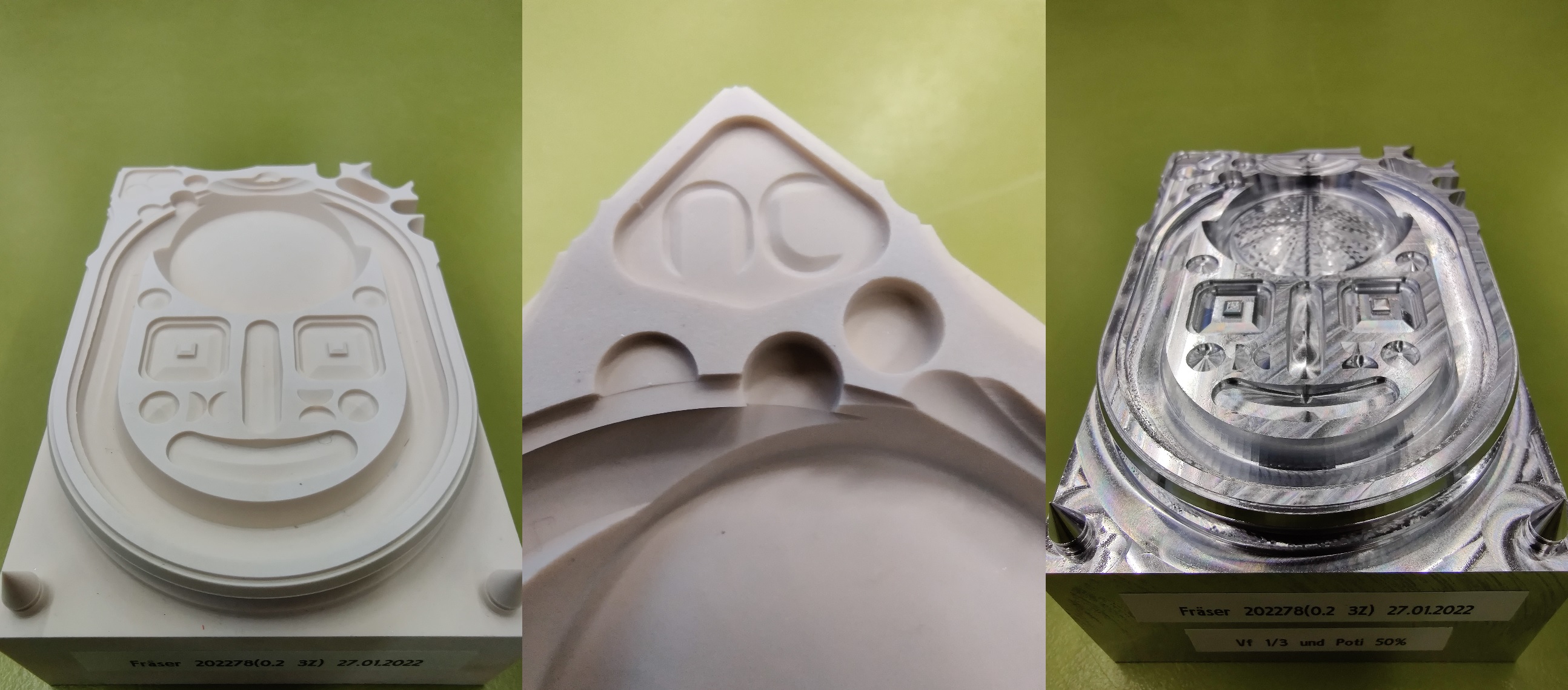 Als Highlight verfügt das Labor über ein 5-Achs-Bearbeitungszentrum, welches mit "State-of-the-Art" Softwaretools programmiert und die Bearbeitung anschliessend unter Verwendung eines "digitalen Zwillings" simuliert werden kann. Ergänzt durch ein datenbankbasiertes Werkzeugverwaltungs- und Messsystem ist eine kollisionsfreie Fertigung möglich. Der elektronische Datenaustausch ist vollständig realisiert (Werkzeugverwaltung-CAM-Programm-Messmaschine-Bearbeitungszentrum). Die Genauigkeitsüberprüfung erfolgt mittels HSC-Prüfwerkstück nach VDI/NCG 5211-Blatt 2.