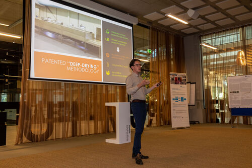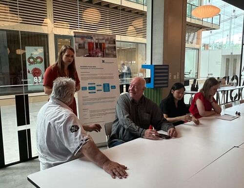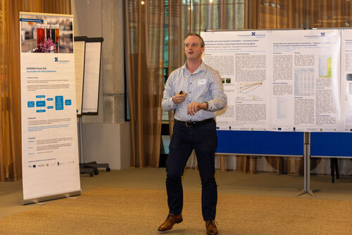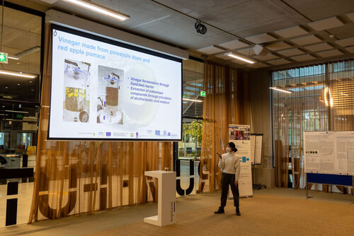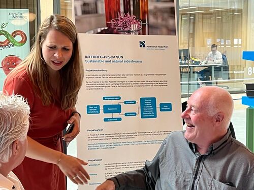 Between the presentations, all partners had the opportunity to visit the poster presentations of the Hochschule Niederrhein on the topic "Extraction of a red dye from red cabbage and use in new products" and "Extraction of the green dye and studies on stability", as well as to taste the first product developments.
