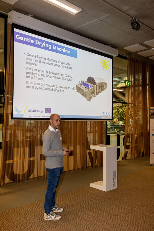 The analytical results of the tests for the residual streams of the two food processors Funken and Manss were presented by Bart Kuijpers. The determinations of bioactive substances are performed in the Brightlabs laboratory. All meeting participants had the opportunity to join a tour of the laboratory during the break, this offer was accepted with great interest by all project partners.