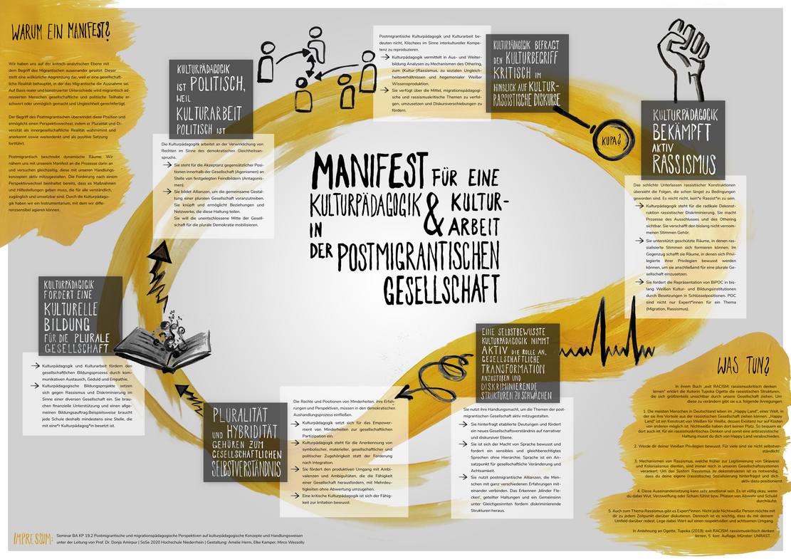 - Eine selbstbewusste Kulturpädagogik nimmt aktiv die Rolle an, eine gesellschaftliche Transformation anzustoßen und diskriminierende Strukturen zu schwächen.