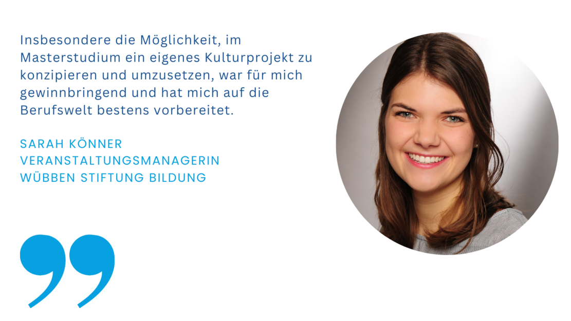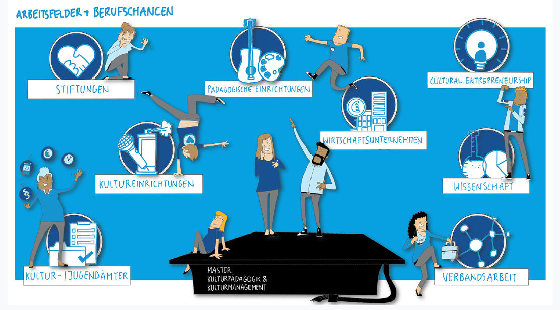 Der Masterstudiengang "Kulturpädagogik & Kulturmanagement" ist in seiner Art einmalig in der Bundesrepublik Deutschland. Unser interdisziplinärer Ansatz verknüpft auf hohem wissenschaftlichen Niveau die Arbeitsbereiche Vermittlung und Management. Mit Blick auf den gesellschaftlichen und institutionellen Wandel sind Sie nach dem Studium für die vielfältigen Management- und Vermittlungsaufgaben in der Kultur-, Medien- und Bildungslandschaft hervorragend aufgestellt.