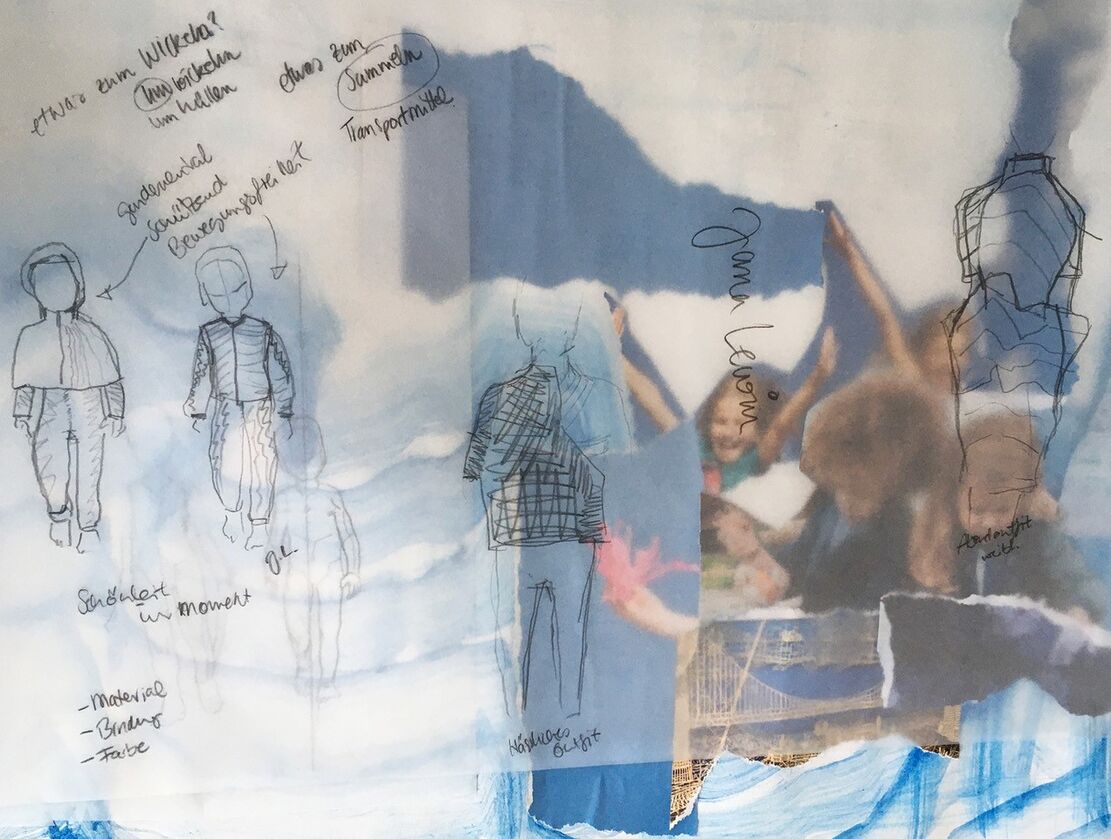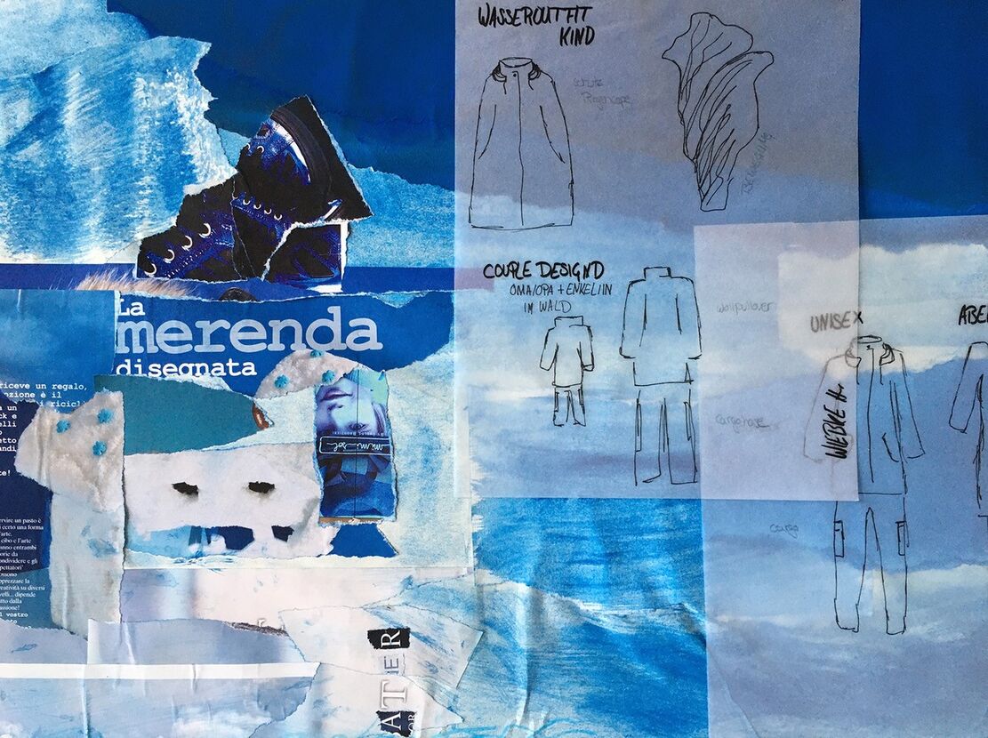 'Design in progress‘ - innerhalb des „Water resistant“ Projektes ist es unser Ziel, Outfits zu designen, die Generationen verbinden, die voneinander lernen: zum Beispiel, Kinder und Großeltern; und die weitere Funktionen auch für andere Design-Sparten nachhaltig konzipieren.