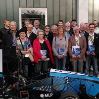 For the degree, the group visited the HSNR's racing team. This group of students builds its own racing car every year, which then participates in international competitions. In these, not only speed, but also technical specifications and a business plan are judged. The group of visitors showed great interest in the current model of the racing car as well as in the previous models and was impressed by the performance of the students. Just how great the interest was was evident from the many questions that were patiently answered by the students. After a guided tour of the racing team's workshop, the alumni of the technical fraternity TV Borussia Magdeburg zu Krefeld were given a send-off with the anniversary book, which was published to mark the university's 50th anniversary last year, and a group photo complete with racing car.