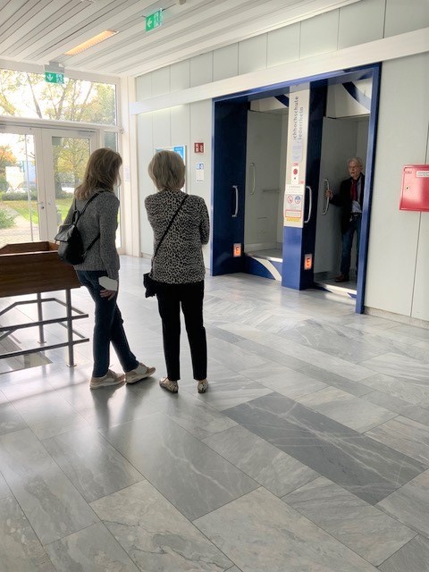 The college's alumni coordinator, Ms. Kaminski welcomed the alumni for a tour. With the words of the chairman of the alumni association Mr. Gunter Berauer "We are glad that you show us all this", the tour through the premises of the university began. Some of the former students first quickly took the opportunity to take a ride on the popular paternoster. In the Faculty of Mechanical and Process Engineering, Ms. Angelika Grahl then welcomed the visitors and explained what has changed at the university in recent years. "Through Corona, more digitalization and home office took place and face-to-face teaching was greatly missed, however the university has weathered all difficulties and challenges well so far," was her conclusion.