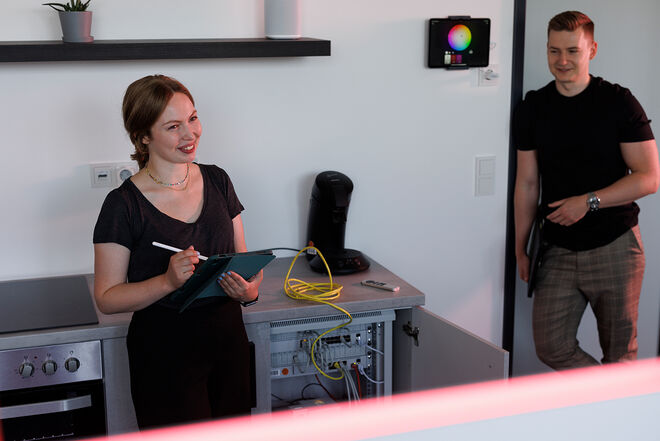 Die Entwicklung von Lösungen für die Energiewende ist wichtiger denn je. In unserem Masterstudiengang Energiewirtschaftsingenieurwesen beschäftigen sich unsere Studierende u.a. damit, wie Messdaten im Energiesektor erfasst und verarbeitet werden. Im IoT-Labor erlernen sie, wie sie die richtigen Sensoren zur Erfassung energetischer Größen auswählen, die erfassten Daten strukturiert weiterverarbeiten und anschließend Handlungsempfehlungen ableiten.